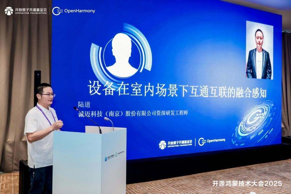诚迈科技(南京)股份有限公司资深研发工程师陆道分享了《设备在室内场景下互通互联的融合感知》议题,以开源鸿蒙系统为基础,构建星闪定位、NFC 感知、蓝牙/Wi-Fi 定位等关键技术,应用于工业平板巡检设备、HongZOS 执法记录仪等产品。