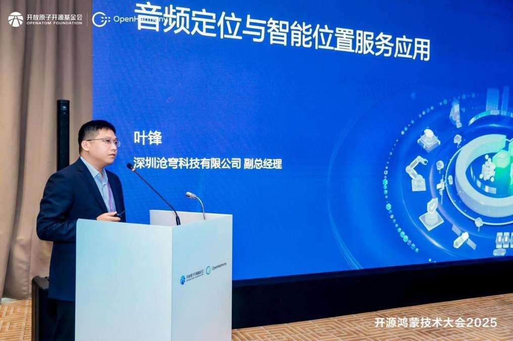 深圳沧穹科技有限公司副总经理叶锋分享了《音频定位与智能位置服务应用》议题,以音频定位为核心,通过多源信号融合实现高精度室内定位,输出软硬件一体化定位导航产品,面向消费级市场,不增加、不改变终端硬件,支持鸿蒙/Android/iOS/微信小程序跨平台定位;同时介绍了地下停车场、交通场站枢纽的应用,满足工作人员管理、安全救援调度指挥、大众导航等应用的位置服务需求。