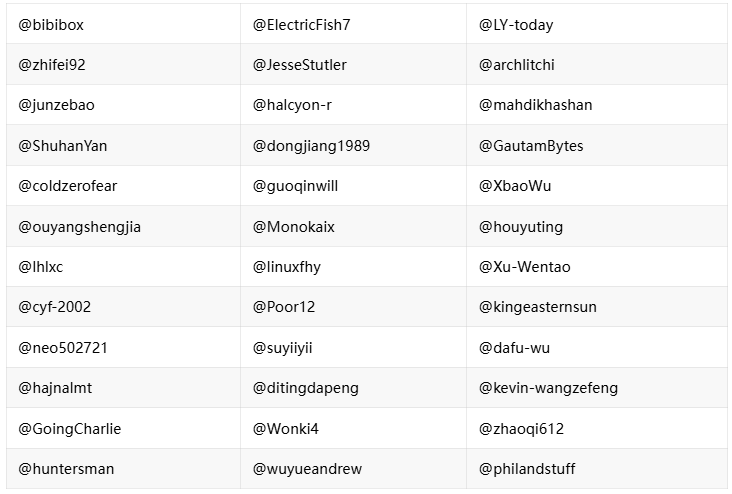 致谢贡献者