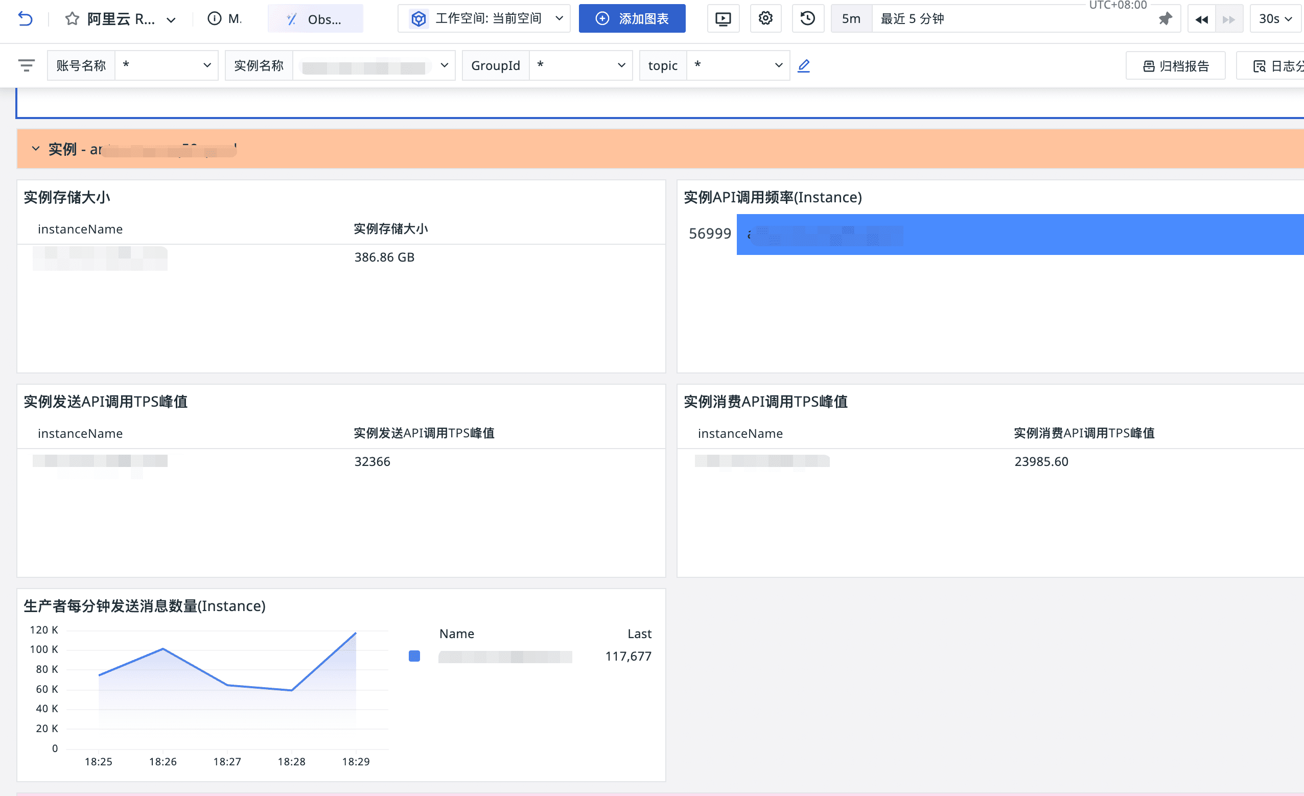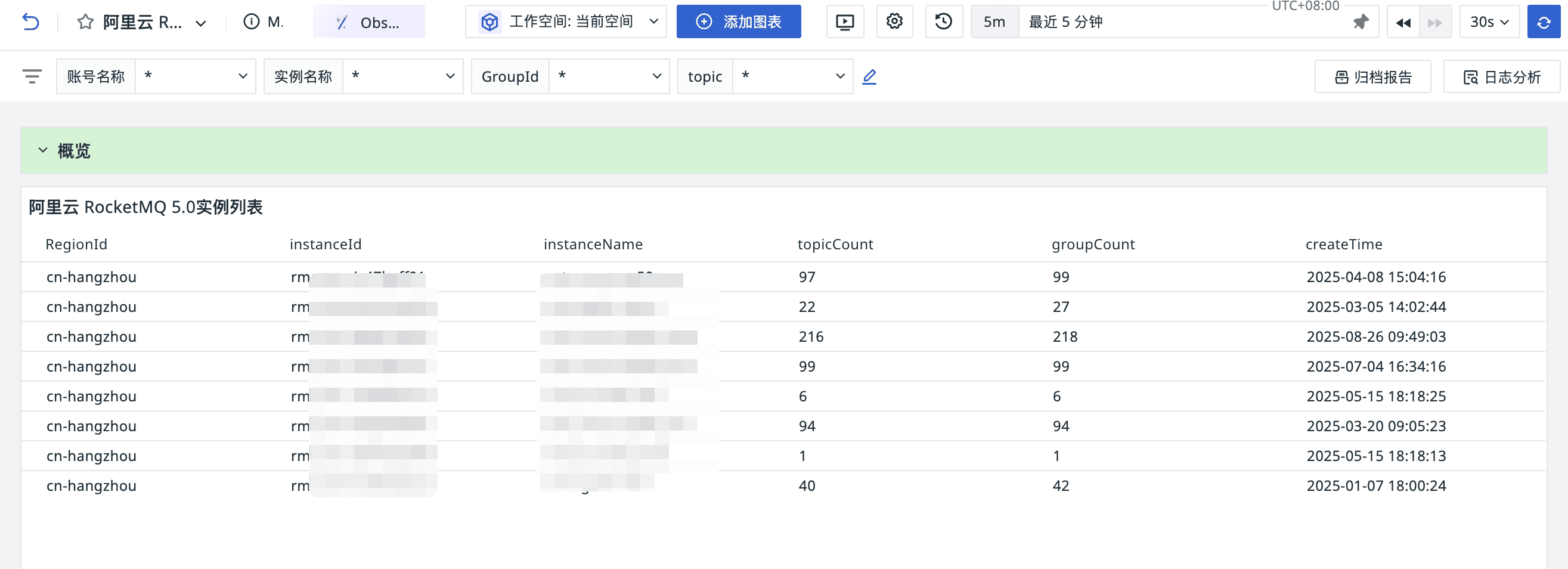 实例(Instance)分组,可以看到 RocketMQ 5.0 实例相关指标