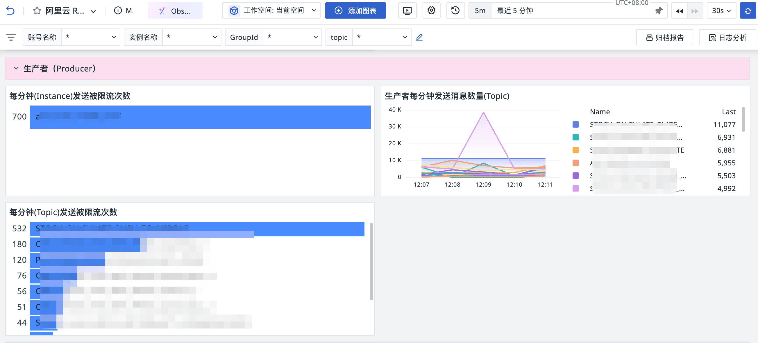 生产者(Producer)分组,可以看到 RocketMQ 5.0 的生产者相关指标