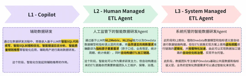 将数据虚拟化技术和 ETL Agent 能力结合,我们可以实现系统自托管的智能数据研发,即 Galaxy 智能化的 L3 阶段。