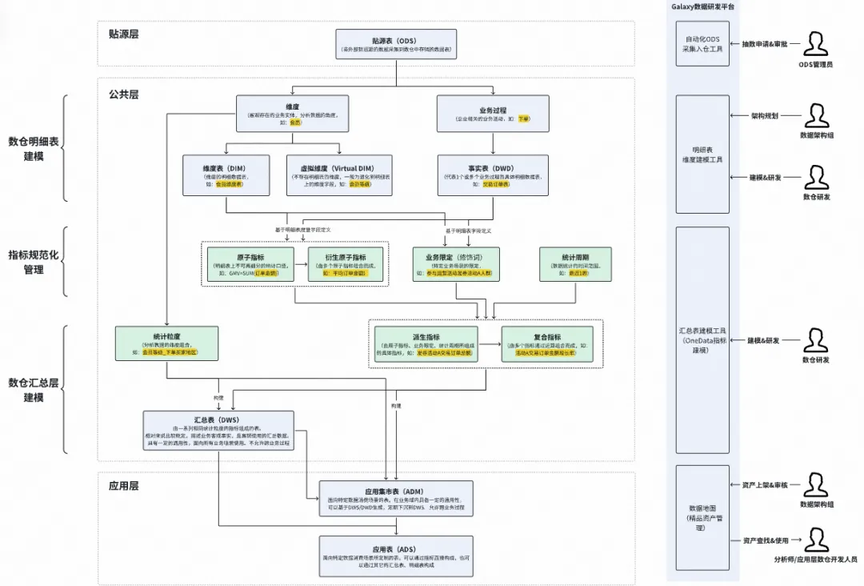 保证维度和指标一致性:通过维度和业务过程的概念建模,确保维度表和事实表的全局唯一性;同时通过原子要素的指标建模,确保指标口径的全局无二义性。