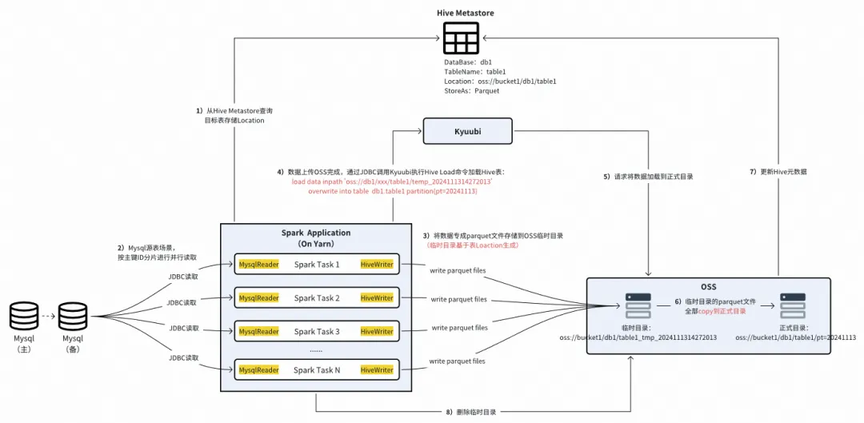 离线数据同步的具体实现执行流程(以 MySQL 同步至得物自建离线存储系统为例):