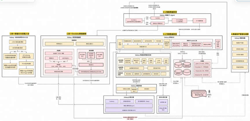 实现智能 ETL Agent 后的智能化 L2 阶段 Galaxy 研发平台架构(红色部分为 Agent 相关模块)