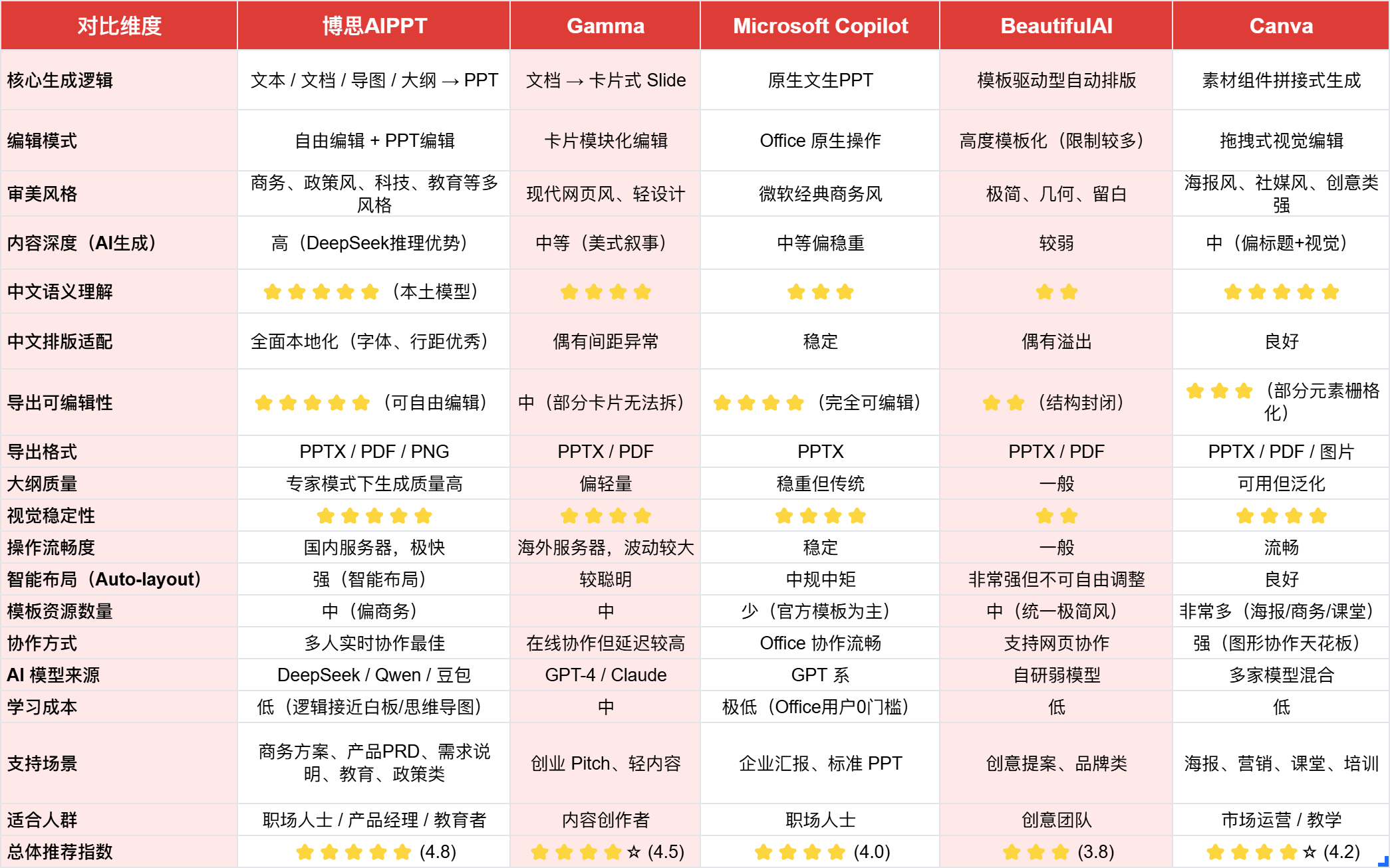 横向对比:5 款 AI PPT 美化工具哪款适合你?