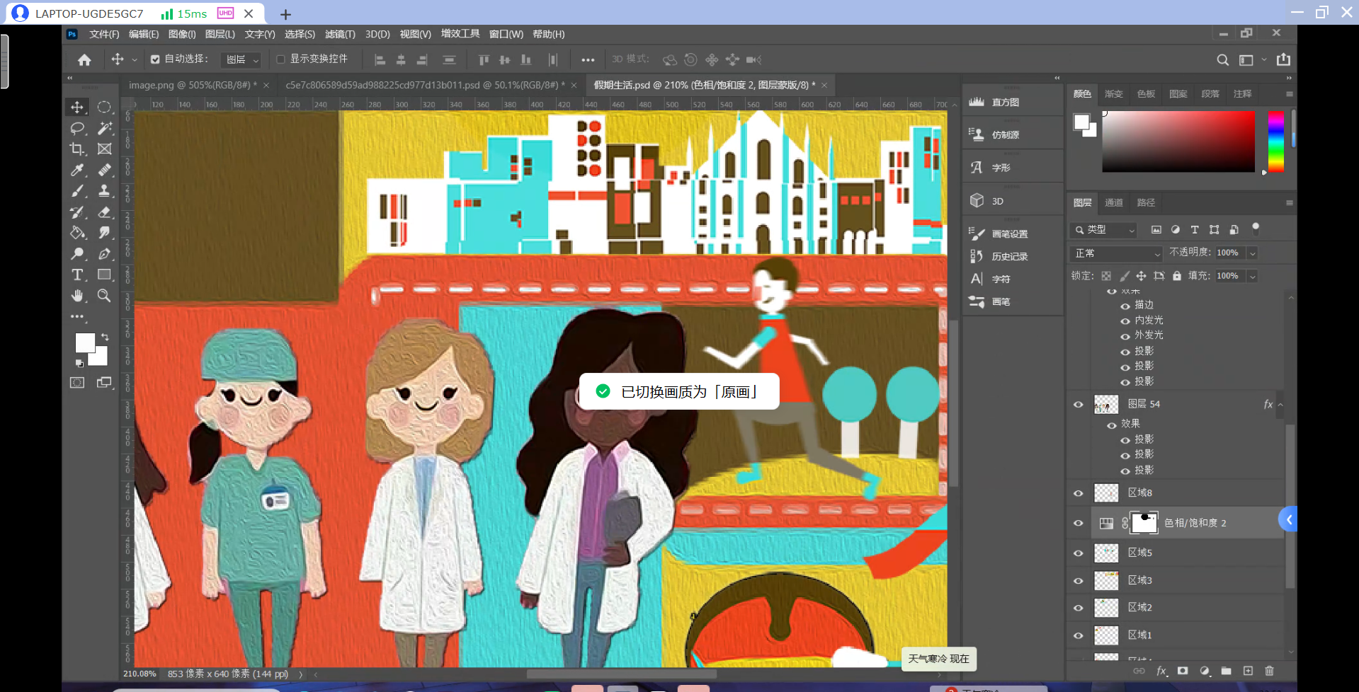 可以看到画质以及色彩有了很大的提升,可以放大来看下