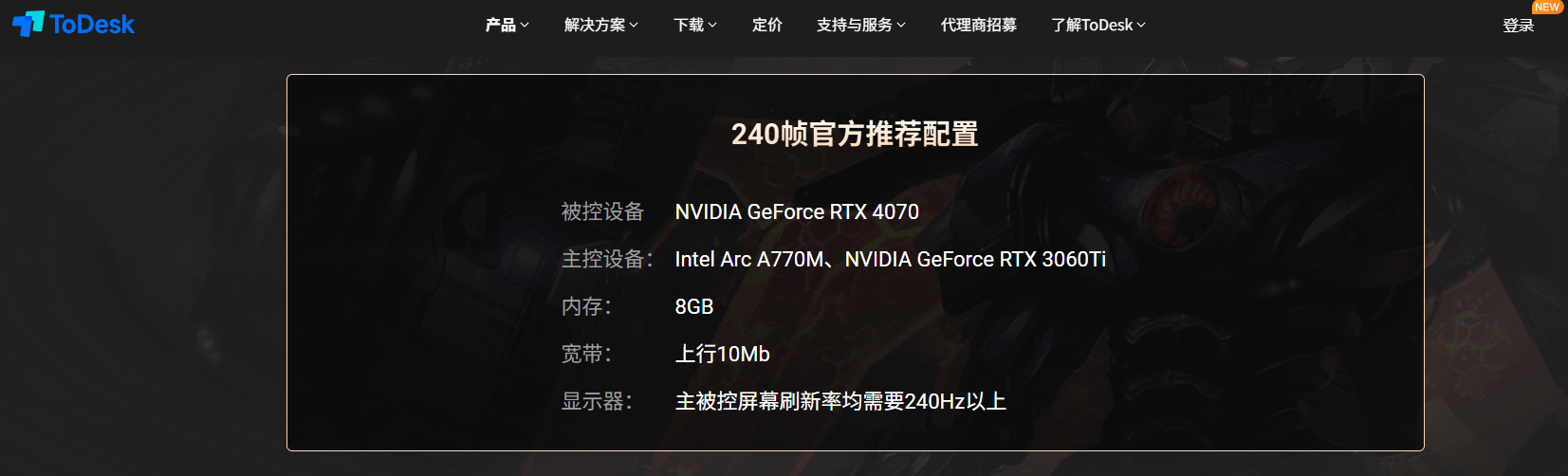 为了保证高帧效果,我特意询问了 ToDesk 官方客服,240 帧、360 帧对设备的要求,官方推荐配置是: