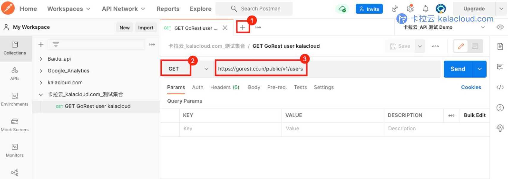 我们刚刚 GET 请求了 ID 2312 的用户信息,其中 name 的值为 kalacloud