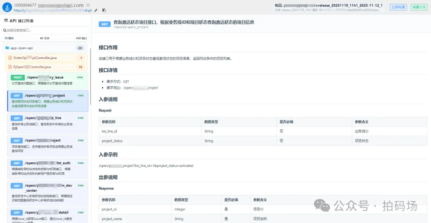 清晰呈现接口核心信息,格式规范统一,关键信息一目了然。