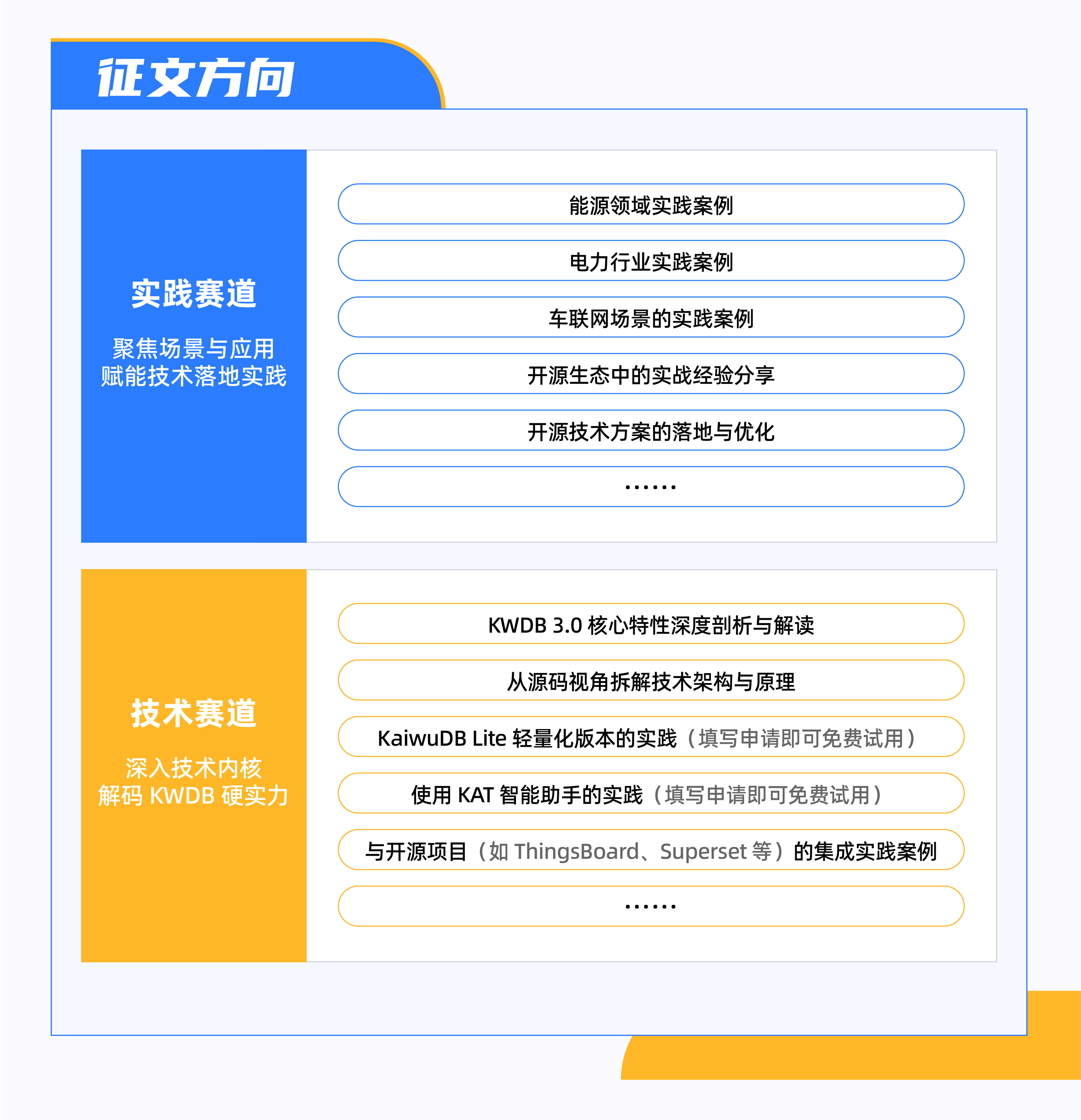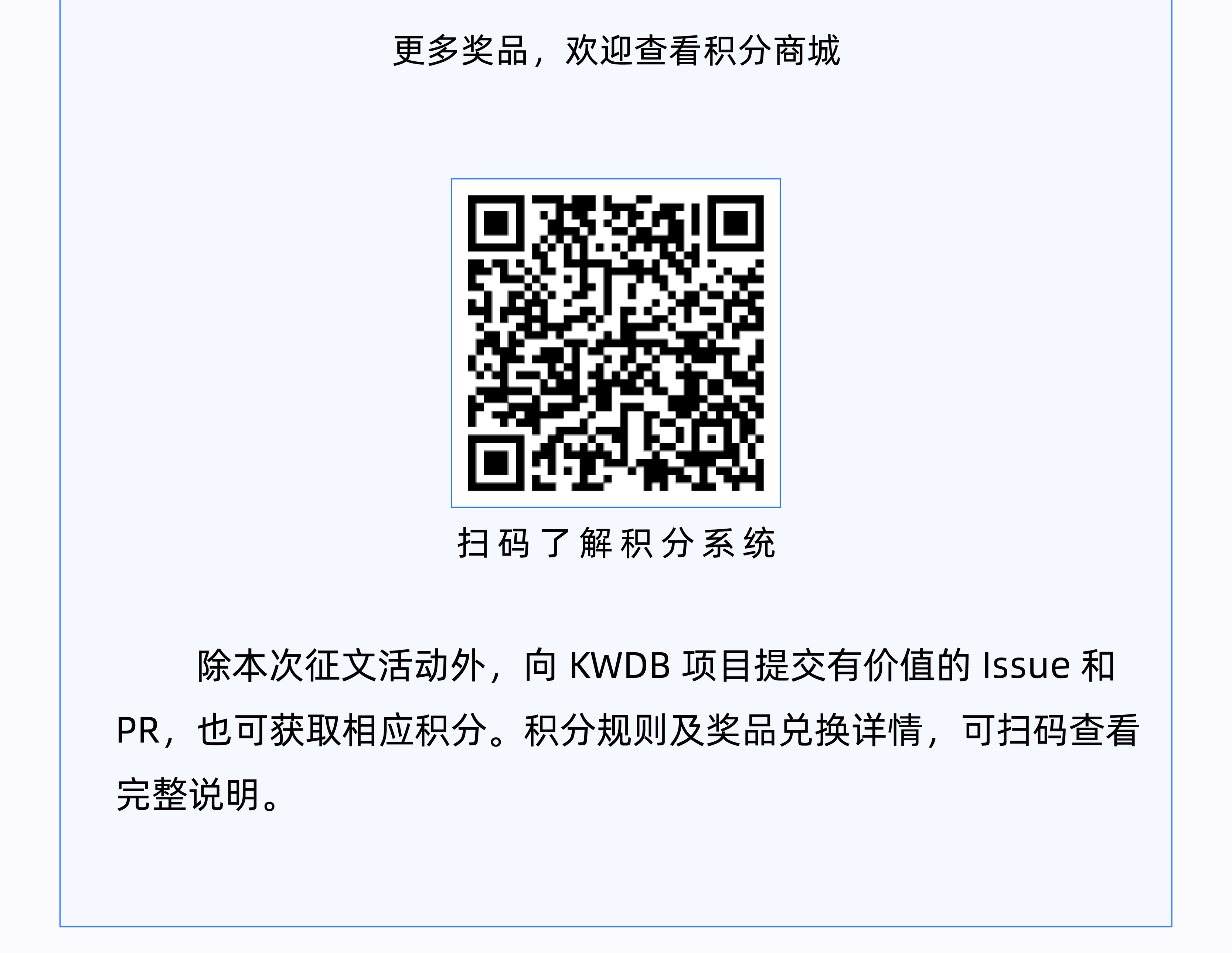 此刻,代码的火种已点燃,创新的征途正开启。无论是深耕场景的实践派,还是钻研内核的技术控,KWDB 的舞台都等你来!用文字记录技术思考,用代码传递开源力量 —— 这个冬天,让我们以技术为名,共赴 KWDB 的巅峰之约🔥!