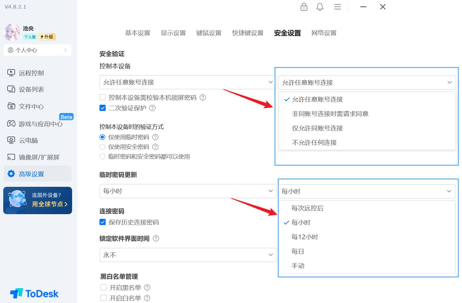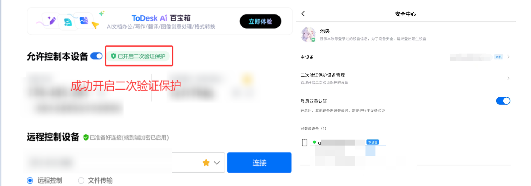 ToDesk:安全设置高度可定制化,构建了以主设备为核心的多重安全保障体系