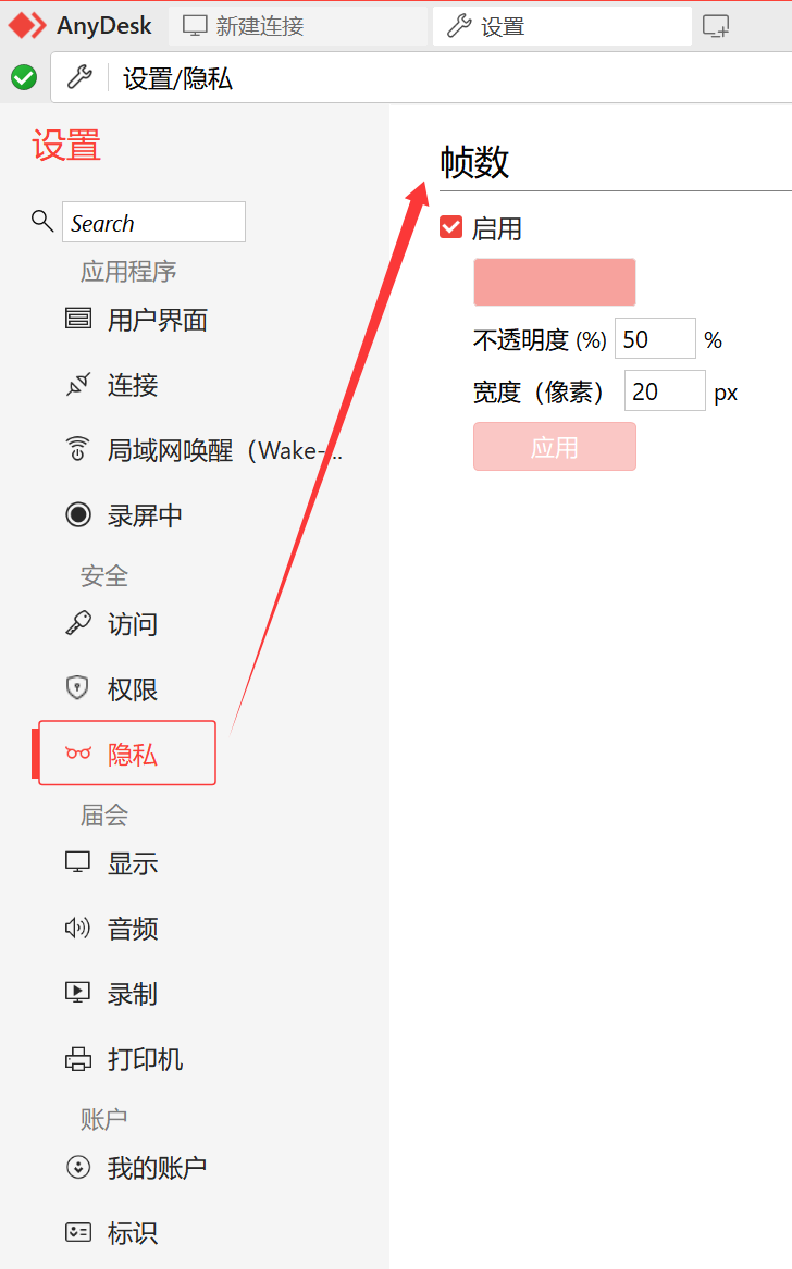 【帧率设置】在隐私中找到帧数设置选项,可以设置不透明度和像素。帧率设置需在隐私菜单中操作,入口隐蔽;无高刷、高分辨率、带宽限制等关键功能。