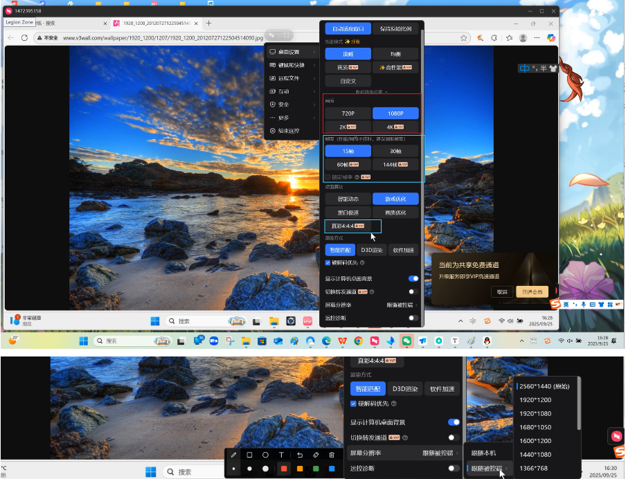 【分辨率设置】在悬浮球“屏幕”->选择屏幕分辨率最高支持 2560 x 1440 分辨率,也就是 4k 超高清,对画面有要求的朋友可以放心用起来了。