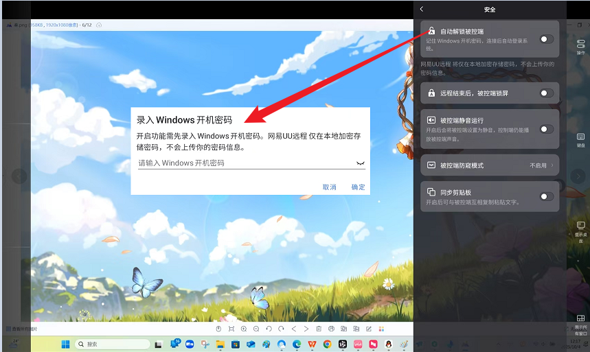 【被控端防窥模式】即便连接成功,想要开启隐私保护也并非易事。UU 隐私权限设置集中于连接后的“安全”菜单中,进入“被控端防窥模式”远程控制时设置为仅显示黑屏,隐藏被控端屏幕内容。