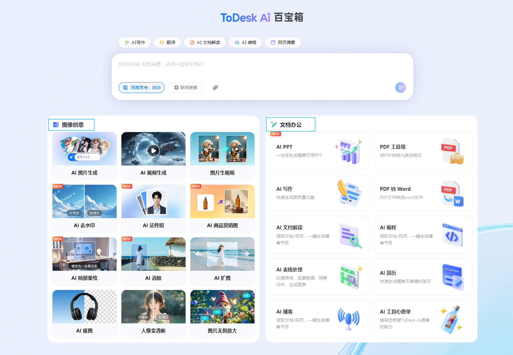 AI 百宝箱:ToDesk 客户端内就能一键调用,“免安装、全功能、助协作”。远程协作时,利用 AI 辅助需求完成,效率倍增。