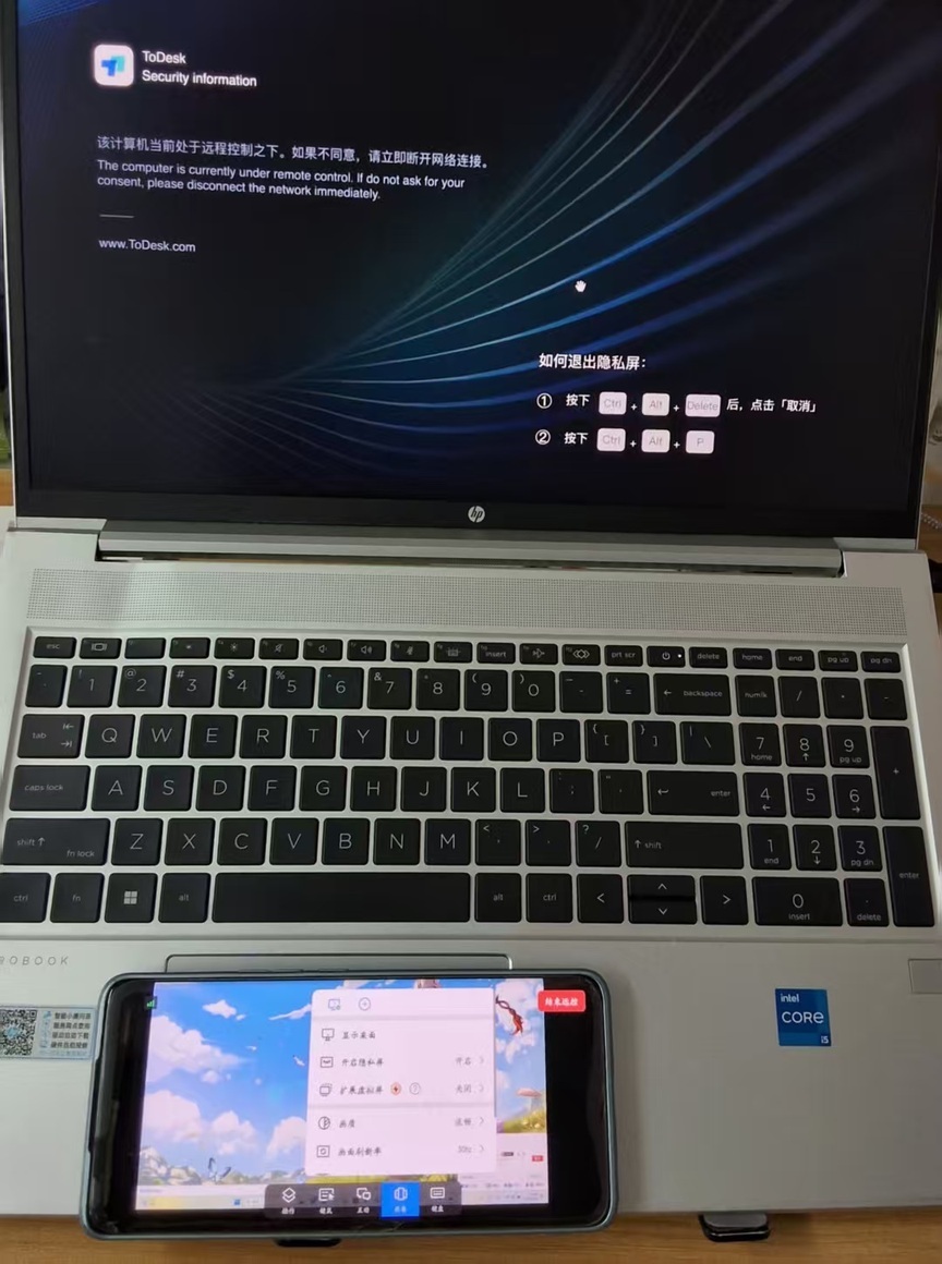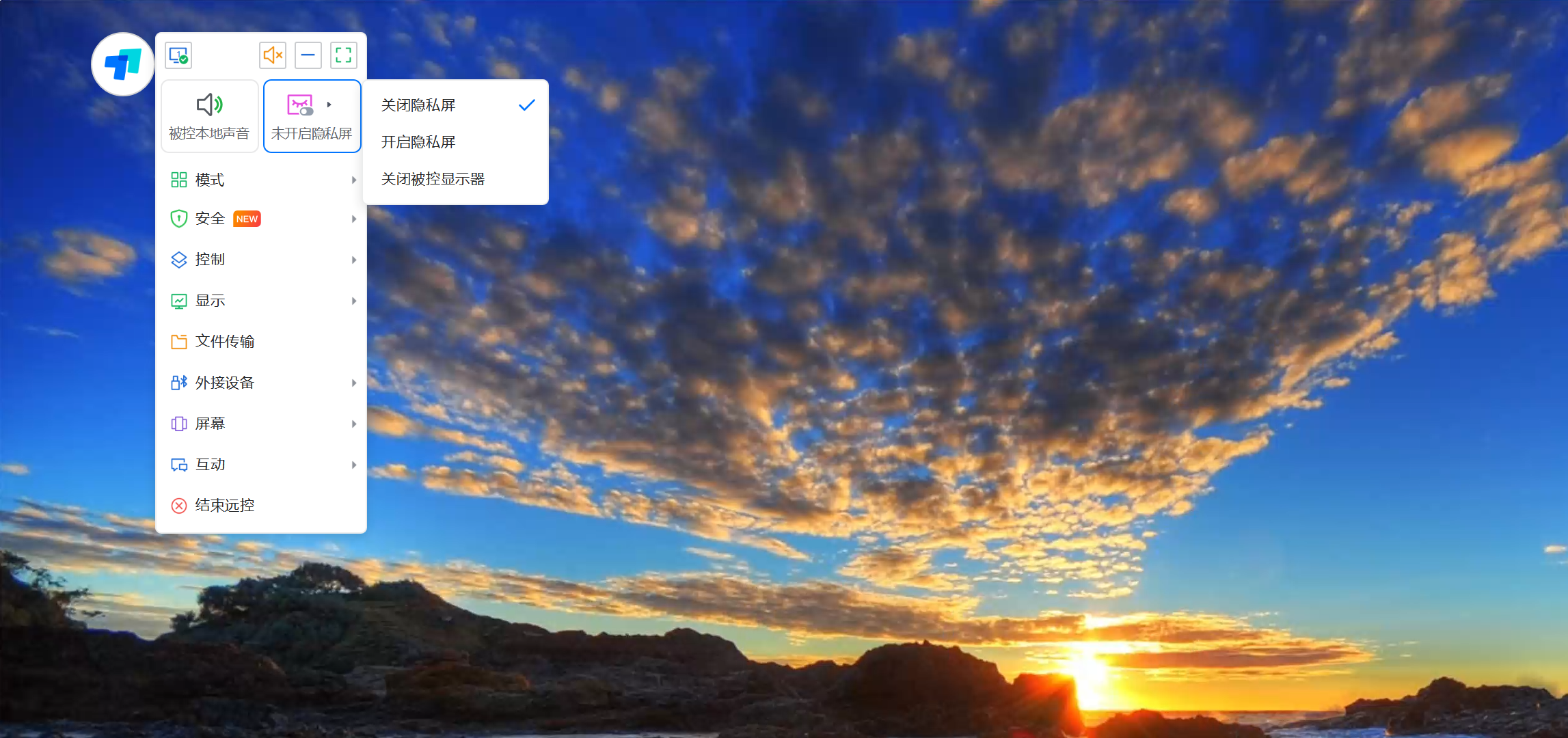 接着在主控端选择开启隐私屏,实操演示如下。不支持被控端自行退出“隐私屏”。