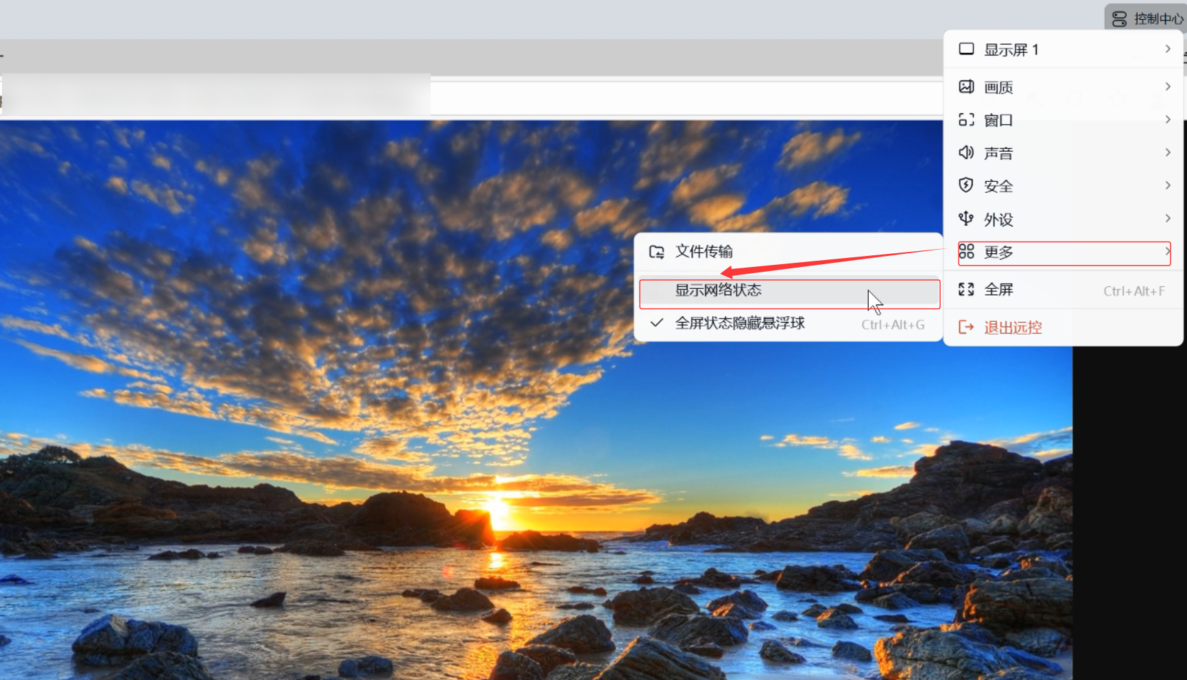 【显示网络状态】PC 端打开方法:控制中心->更多->显示网络状态。