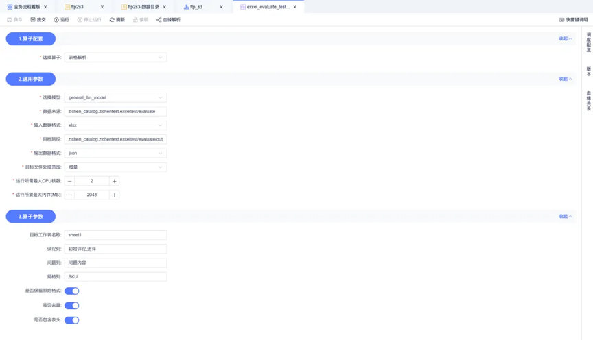 在节点配置页面,选择算子,配置通用参数、算子参数。算子目前支持图像解析、表格解析、情感分析、词频统计等。