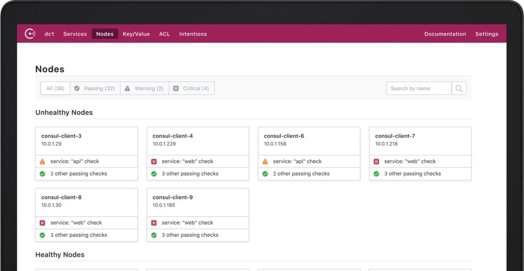 Consul 维护了一个包含所有节点和服务以及它们当前健康状态的注册列表。这方便了操作人员或运营商可以及时了解掌握当前环境状态,应用情况以及自动化运维工具通过 HTTP 协议的 API 与动态基础设施交互。