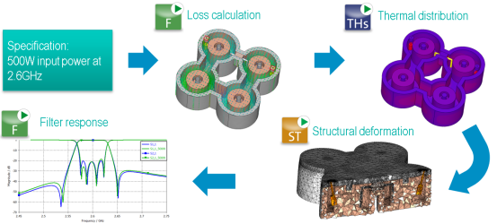 电磁学与其他物理场有着紧密的联系,包括力学、热力学、流体力学等。如今,多物理场分析已经成为众多部件设计所必需的,包括电机、变压器、电磁炉、腔体滤波器、卫星天线、电子器件散热设计等等。在许多情况下,电磁效应难以与热效应和机械效应分开,例如,大功率连接器或者腔体滤波器在使用时会发热,进而产生结构形变,从而影响电磁性能,这是典型的多物理场仿真场景。