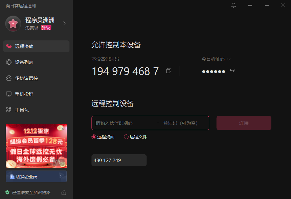 向日葵作为国内比较主流的远控,免费版的安全保护机制相对 ToDesk 还是略差一些,也比较适合快速使用/简单使用的场景。