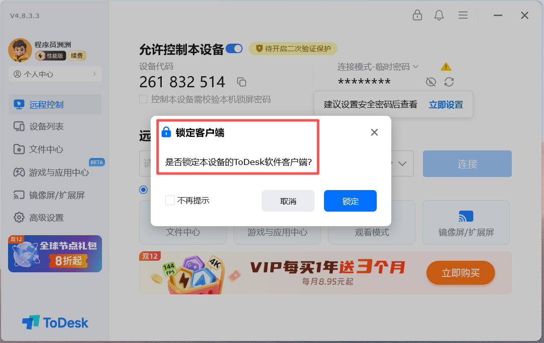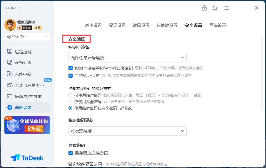 2025 年新增二次验证保护的版本,号称是“史上最安全的 ToDesk”!