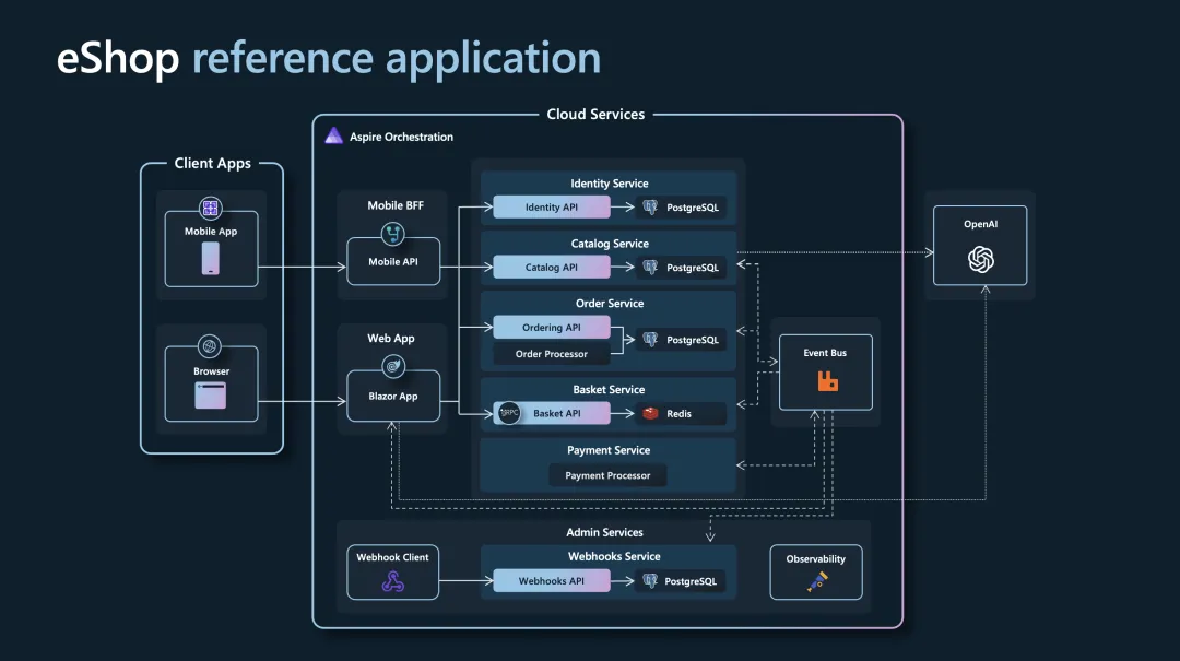 eShop 基于.NET 9 构建,并集成了.NET Aspire、Blazor、Azure OpenAI 等先进技术,数据库采用 PostgreSQL,缓存采用 Redis,客户端支持网页版本、iOS 版本和安卓版本,为开发者提供了一个学习和实践的平台。此外,项目还提供了详细的运行和部署指南,以及示例产品数据和 AI 集成,帮助开发者更好地理解和应用这些技术。