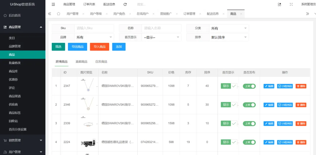 UrShop 是一款基于原生微信小程序 + .NET Core + Layui 技术构建、开源(GPL-3.0)、功能全面的微信小程序商城系统,项目包微信小程序端和后台管理端。