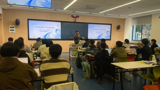 随后,非凸科技核心策略研发部的 Lirving,以浙大学长身份分享了从校园到企业的成长路径。他结合自身在策略研究与系统开发中的实战经验,生动阐释了机器学习、大模型等前沿技术如何深度赋能交易工具的研发与迭代,为在场同学清晰展现了数智金融行业的真实面貌与发展前景。