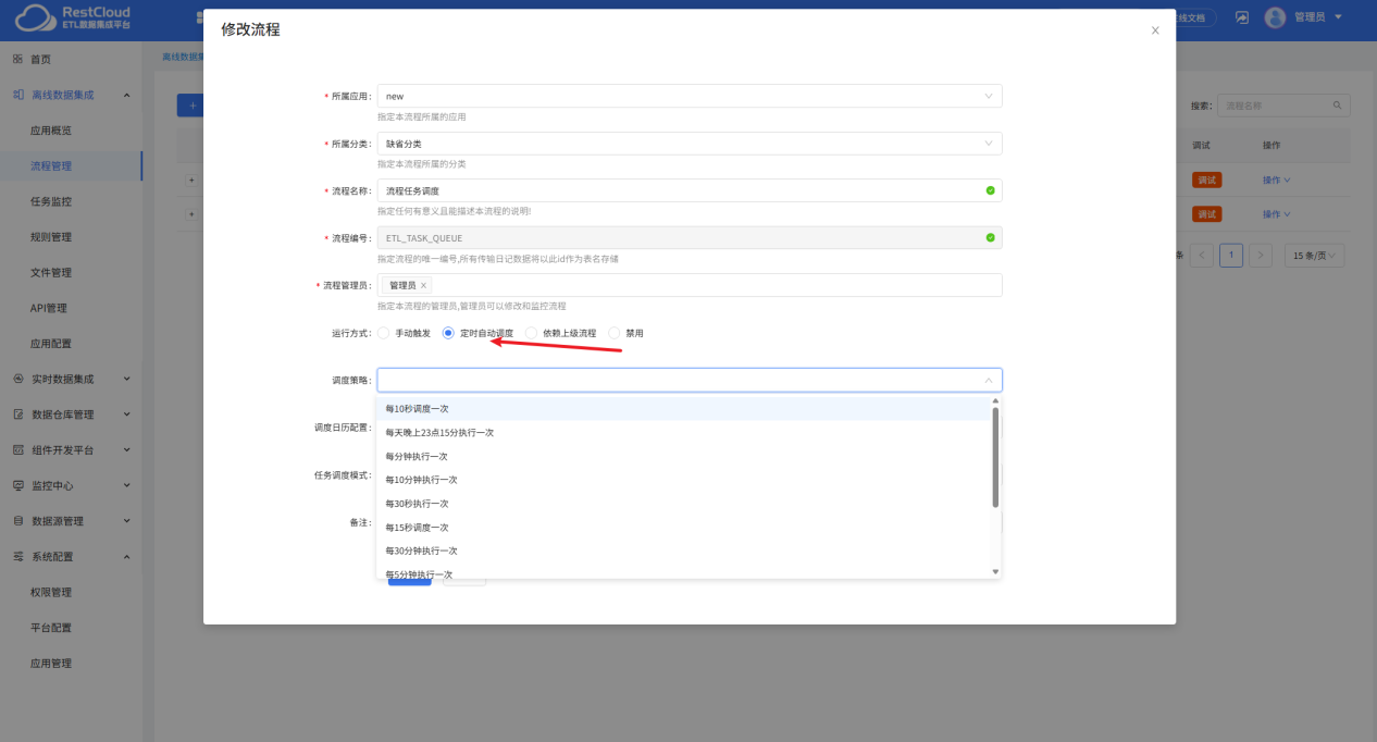 接下来介绍一下 ETLCloud 中的流程任务有多种调度模式。