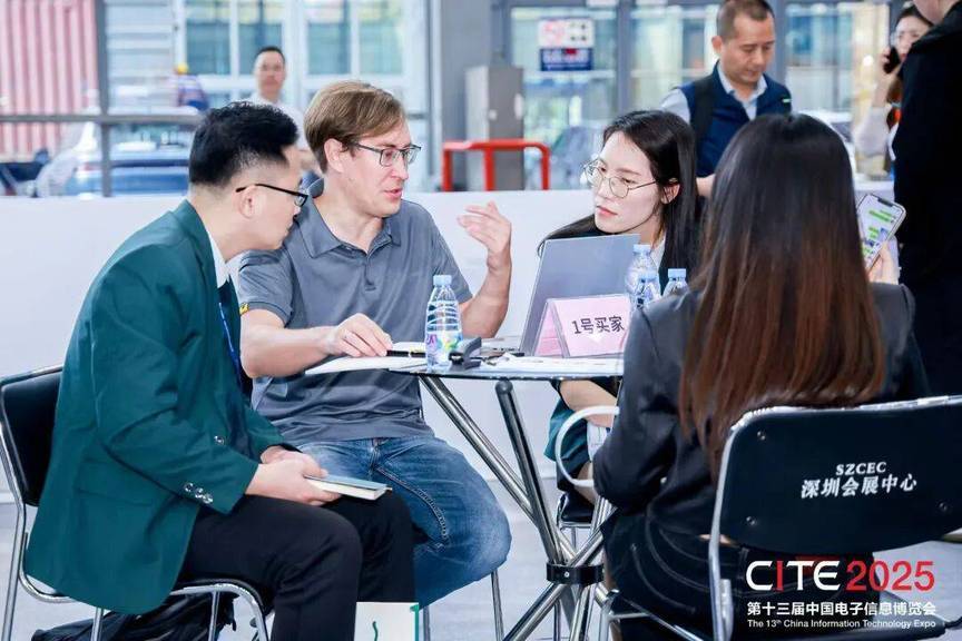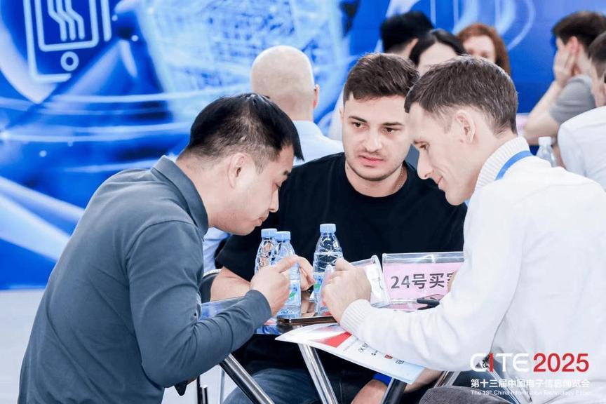 中国电子信息博览会(CITE)以专业化服务体系赋能参展企业,通过精准商贸对接、全产业链展示平台及定制化增值服务,助力企业拓展全球市场。CITE2025 展会通过海外买家采购对接活动这一免费增值服务,为参展企业搭建了高效的全球合作桥梁。通过 150 余场精准的一对一商务洽谈,成功汇聚来自泰国、俄罗斯、越南、印度、马来西亚、印度尼西亚、加拿大、香港、澳门、台湾等 10 个国家和地区的 100 位优质采购商,现场实现供需高效匹配,获得参展企业的高度评价。