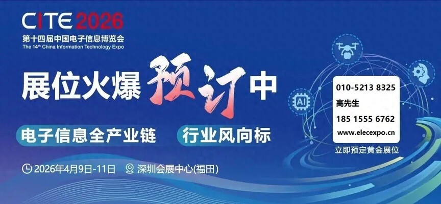 第十四届中国电子信息博览会(CITE2026)将于 2026 年 4 月 9-11 日,深圳会展中心(福田)盛大举办,8 万平方米展示面积将聚焦展示智能终端、具身智能、AI 应用场景、AI 算力、数据存储、电子元器件、集成电路、半导体设备与核心零部件、特种电子元器件等热门领域产品及技术。CITE2026 设置了五大主题展馆:新一代信息技术创新应用馆、AI 算力 &数据中心馆、两用电子技术馆、特种电子元器件馆、核心先导元器件馆,超 20+特色主题展区,通过“主题馆+细分展区+精准定位”的立体化布局,全方位展示电子信息全产业链生态,预计将吸引超 1200 家参展企业和超 6 万名海内外专业观众。