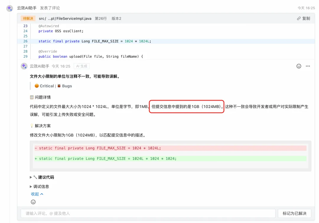 单提交智能评审上线!用云效精准定位复杂 MR 代码问题