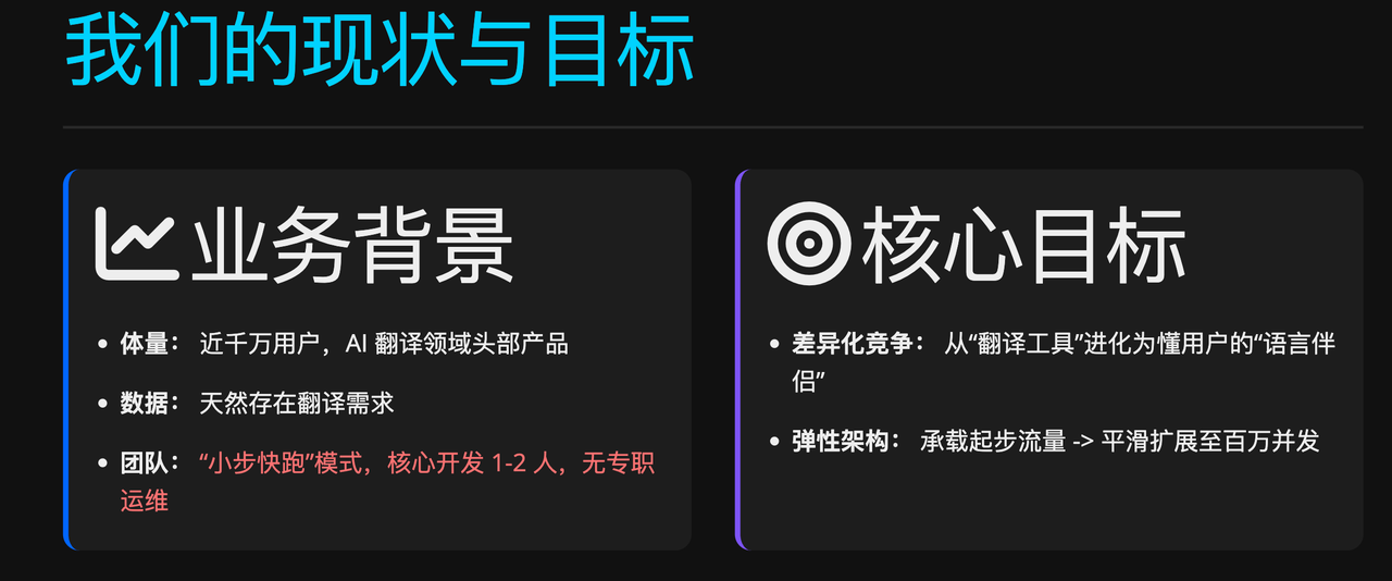 沉浸式翻译(Immersive Translate),作为 AI 翻译领域的头部产品,拥有近千万用户。在 Databend Meeup 上海站沉浸式翻译团队透露他们启起阶段是自我搭建一个 HTAP 库用于承接业务及数据分析,但面临运维和成本比较高的问题,特别是数据量越来越大,SSD 成本增加明显,陈琦作为开源社区的重度参与者也是早期关注到 Databend, 在和 Databend 团队沟通后,利用 Vector + Databend Task 构建数据摄入链路,整个用时 3 天实现从 HTAP 迁移到 Databend Cloud 上面,利用 Databend 按付费用,存算分离架构。大大降低了存储和计算成本。