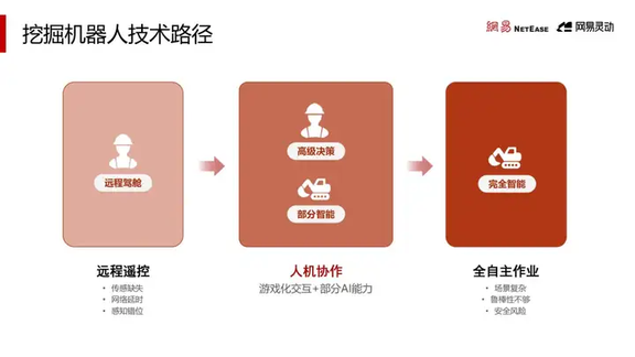 为灵活满足不同行业、不同发展阶段的客户需求,网易灵动提供基础版、进阶版、智控版 3 种产品方案,现场,陈赢峰博士分享了网易灵动在挖掘机器人远控和智能化上的进展。