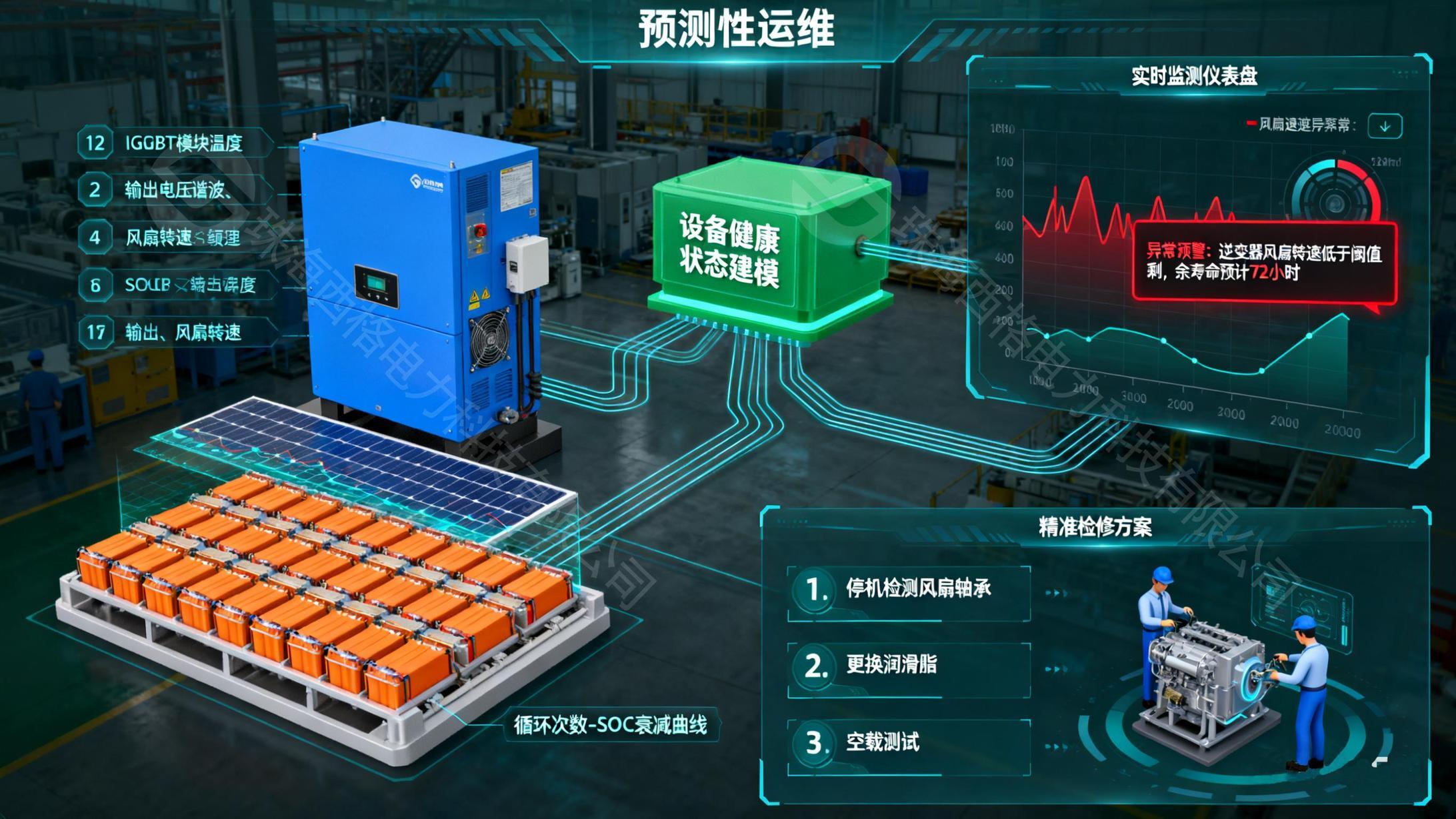 绿电直连系统中的关键设备,传统运维方式多为 “定期巡检 + 故障后维修”,存在 “过度运维” 或 “运维滞后” 问题。