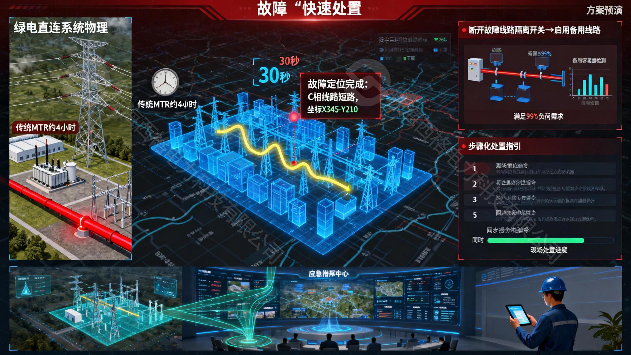 绿电直连系统中,故障若处置不及时,易导致故障扩散,传统故障处置依赖 “人工排查 + 经验判断”,平均故障恢复时间(MTTR)约 4 小时,造成较大损失。