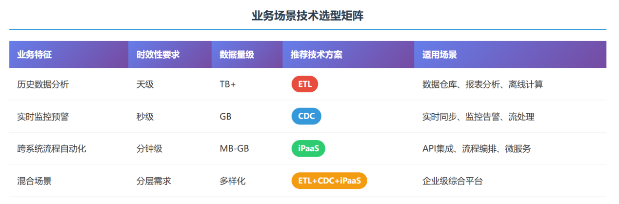 图:ETL、CDC、iPaaS 技术综合能力对比