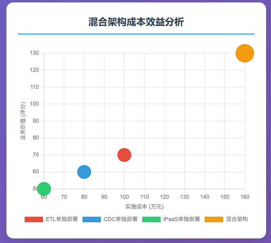 在实际项目中,单一技术往往无法满足企业的全部需求。成功的数据集成方案通常采用多技术协同的架构模式可以同时混合采用 ETL、CDC 及 iPaaS 形成企业的全域集成解决方案。