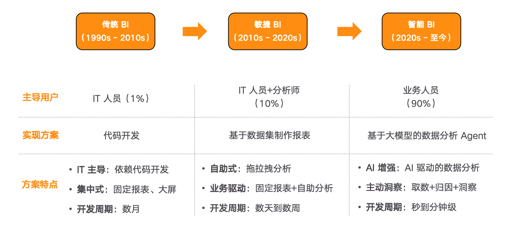 在数字化转型的浪潮中,随着数据已成为企业宝贵的资产,数据分析的需求日益增长。传统 BI(商业智能)工具虽能提供强大的数据可视化能力,但需要依赖 IT 代码开发、集中式报表制作的模式,已难以满足现代企业快速变化、灵活多变的数据分析需求。