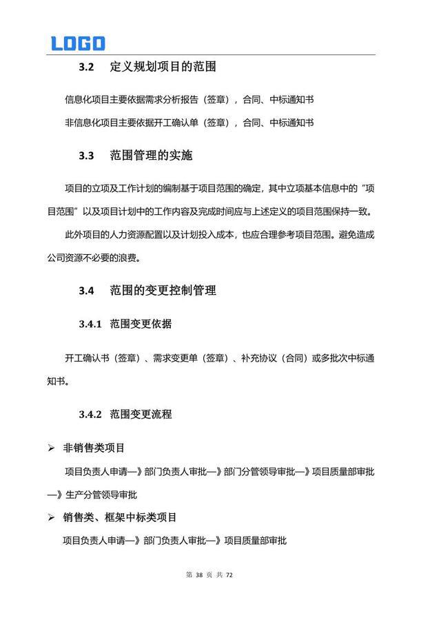 范围管理要求 3.1 需求确定 3.2 范围规划 3.3 实施管理 3.4 变更控制 3.5 范围核实