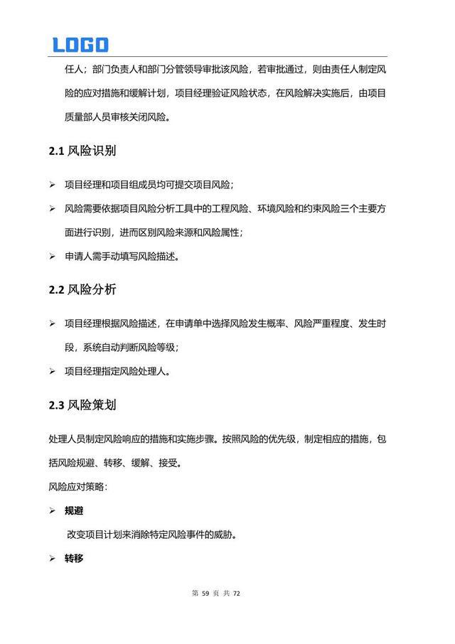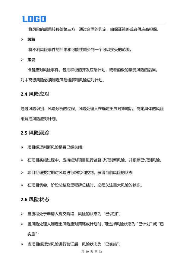 风险定义与管理流程 2.1 风险识别 2.2 风险分析 2.3 风险策划 2.4 风险应对 2.5 风险跟踪 2.6 风险状态