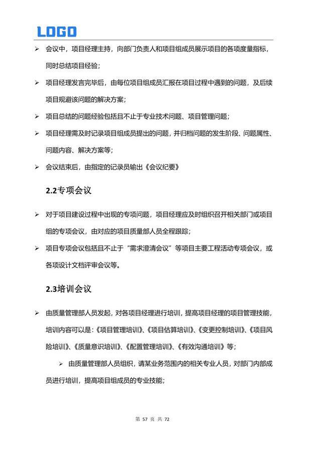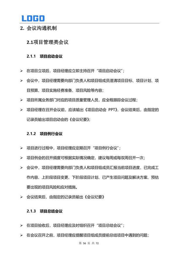会议沟通机制 2.1 项目管理会议 2.2 专项会议 2.3 培训会议