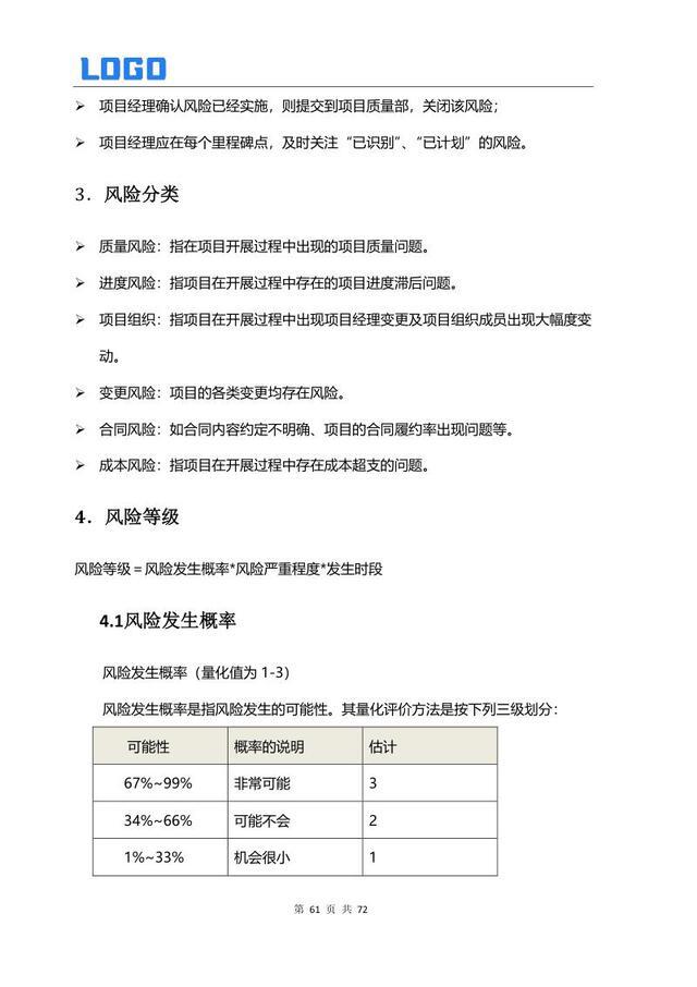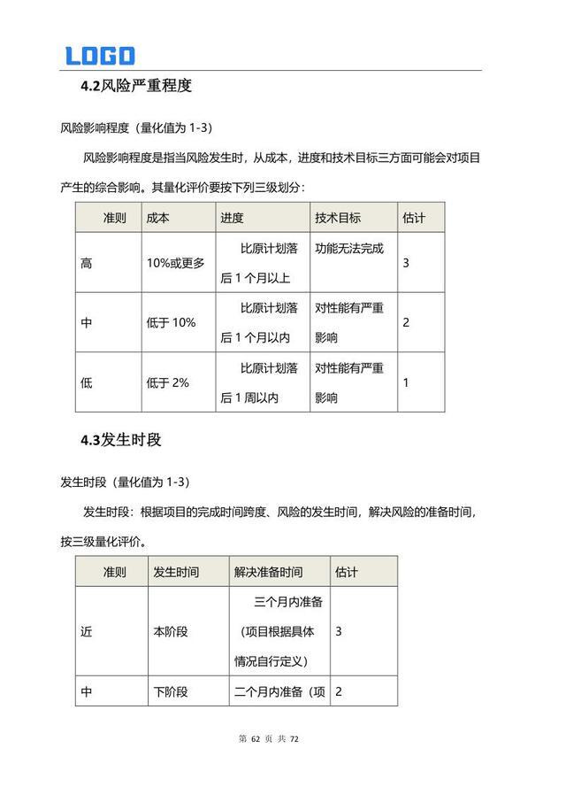 风险分类与等级 3.1 发生概率 3.2 严重程度 3.3 发生时段