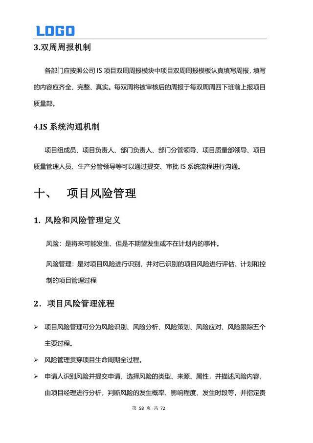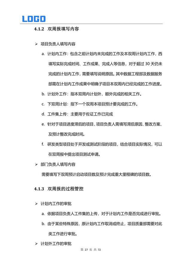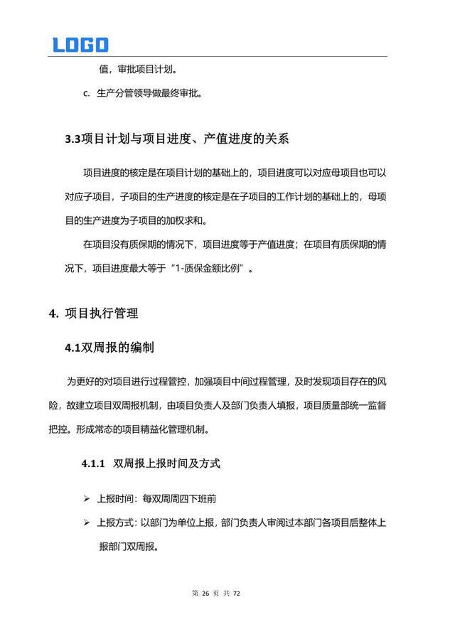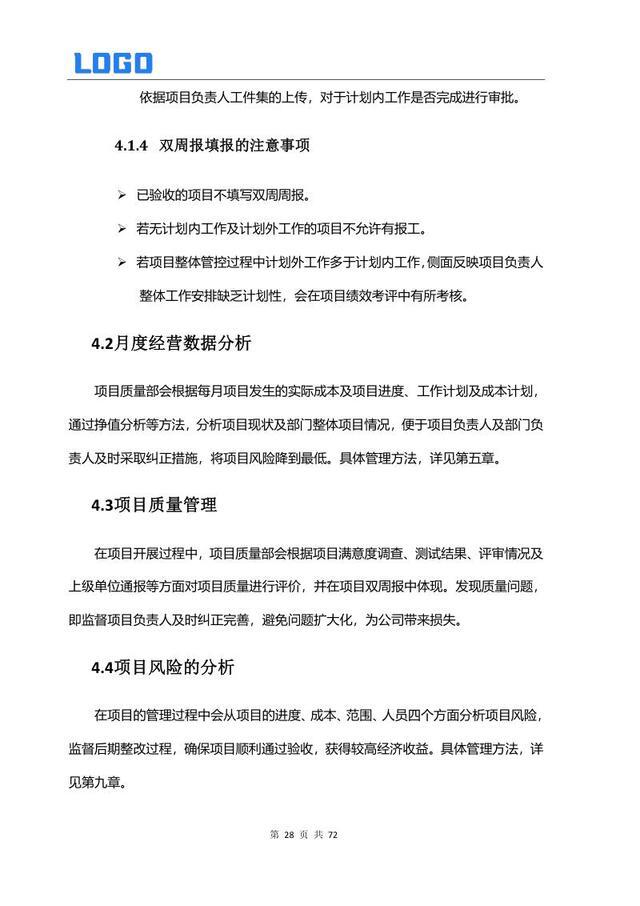 项目执行管理 4.1 双周报编制 4.2 月度经营数据分析 4.3 质量管理 4.4 风险分析