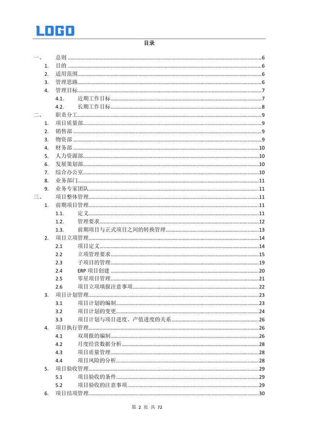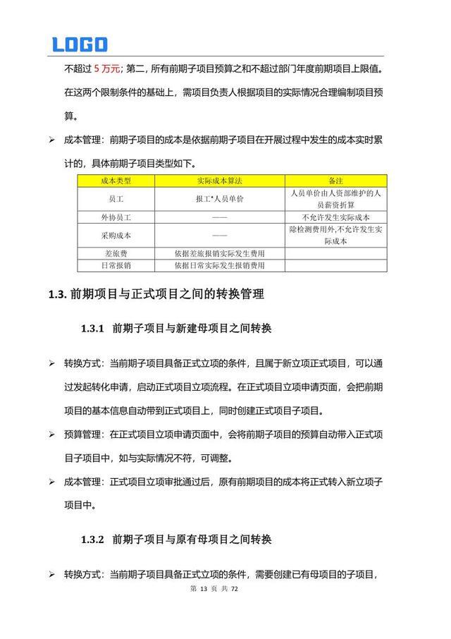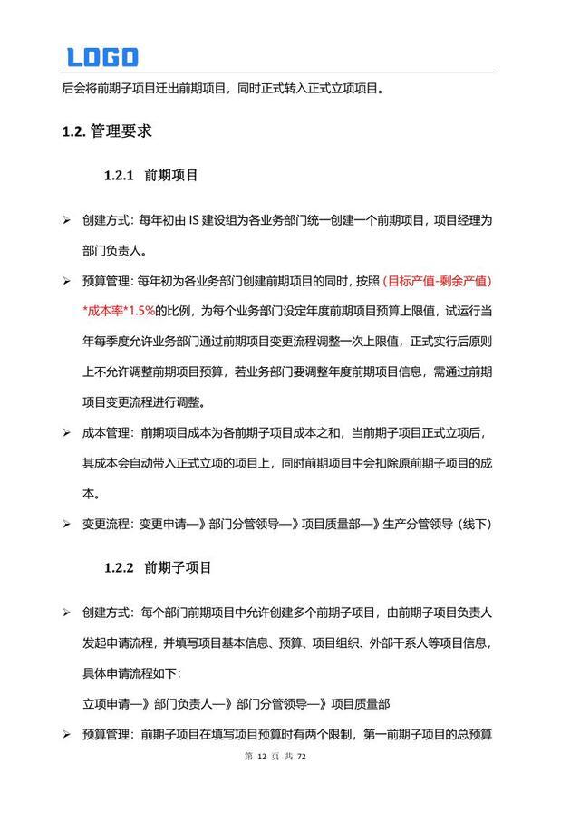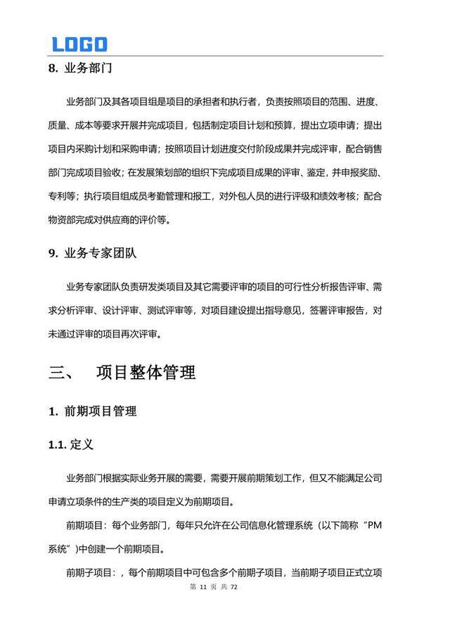 前期项目管理 1.1 定义与要求 1.2 前期与正式项目转换管理