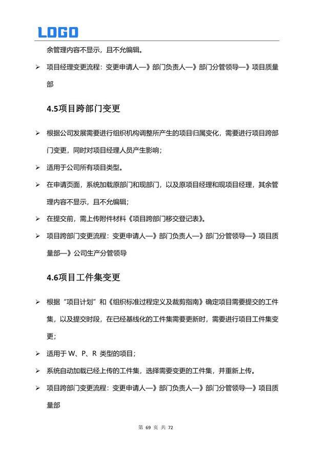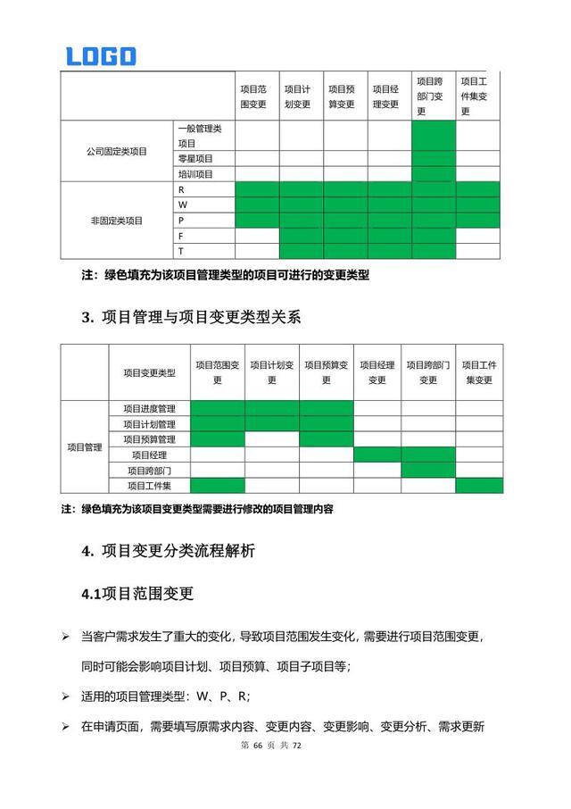 变更分类流程解析 3.1 范围变更 3.2 计划变更 3.3 预算成本变更 3.4 项目经理变更 3.5 跨部门变更 3.6 工件集变更