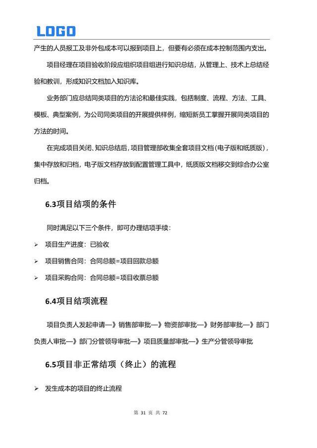 项目结项管理 6.1 结项分类与要求 6.2 结项条件与流程 6.3 非正常结项(终止)流程 6.4 结项与终止审批步骤