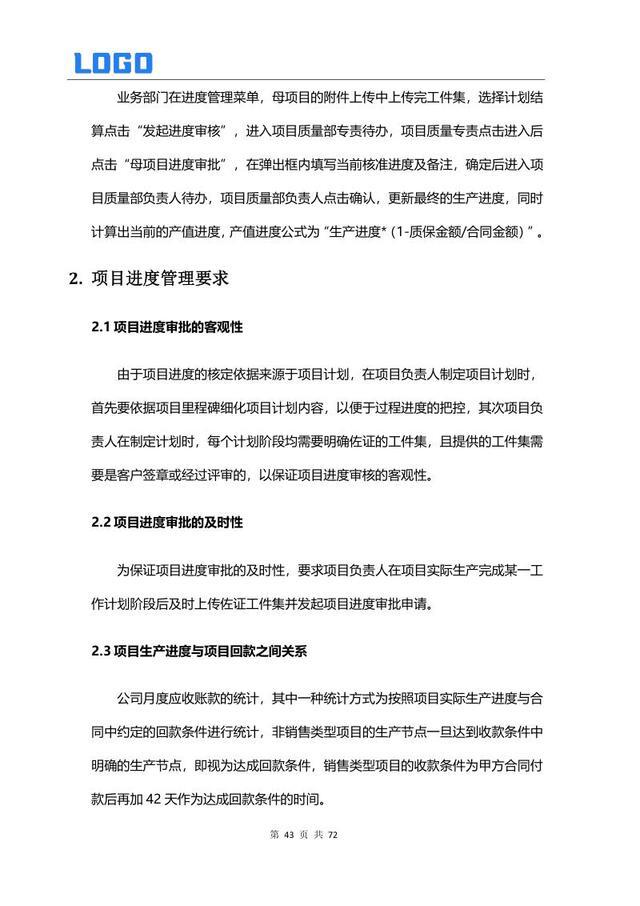 进度管理要求 2.1 审批客观性 2.2 审批及时性 2.3 生产进度与回款关系